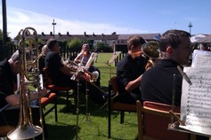 Unusually on August Bank Holday the sun came out for our annual concert at the Institute followed by a BBQ. This year, the club had also organised various "fun" activities including a buffalo rodeo, sumo suits and a number of inflatable bouncy castles and slides which were of course used by members of the band! video The hour long concert took place in glorious sunshine in the beer garden at the back of the Institute and our thanks go to the (many) deps who came along and helped us out in the afternoon. Following playing, a BBQ and several drinks were enjoyed by both members and guests in the warm sunshine. photo's